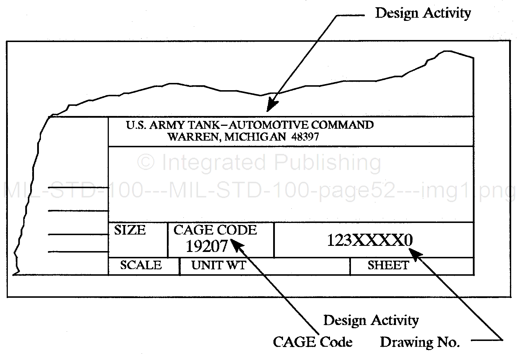 FIGURE 400-1. Example of CAGE Code, drawing no., design activity relationship as originally specified